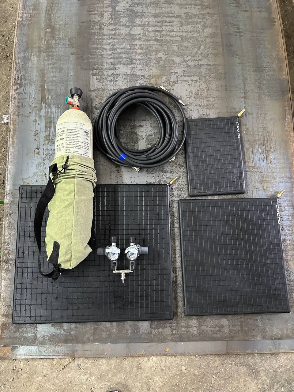 - Параллельная работа 2-х пневмодомкратов (плоских пневматических домкратов), последовательная работа 4-х пневмодомктаров (плоских пневматических домкратов).